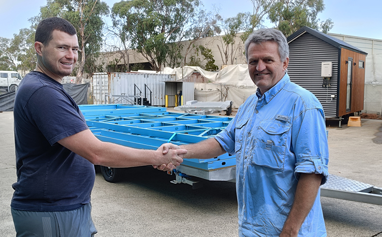 The project officially kicked into gear when teacher Graeme Smyth made the trip to Melbourne to collect the frame, with six-metre roof panels and a full suite of building materials now on site.