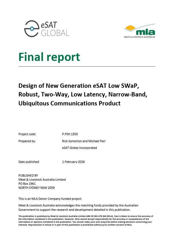 MLA and eSAT acknowledge the contributions of Smart Paddock for tag housing and dashboard visualisation, and Viasat for satellite network and earth-station support.