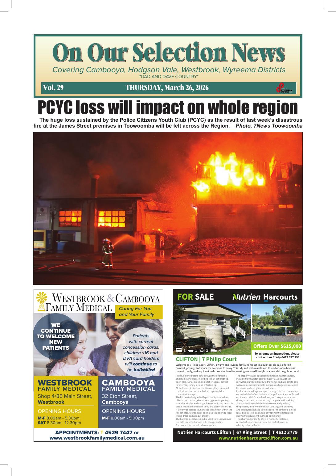 NewsOut now - Archive - March 2026Qld On Our Selection News, 26 March 2026 By Ted Rogers, On Our Selection News 26 March 2026 Recent stories Stansbury and Port Vincent turn it on for Saltwater Classic Yorke Peninsula Country Times - A better lifestyle through a stronger economy – Queensland back in business as Crisafulli Government unlocks major resources projects: Bleijie Contributor, ARR.News - Armidale event to explore what happens to solar panels at end of life Contributor, ARR.News - Cash is coming back as revealed by RBA survey: NSA Contributor, ARR.News - Global fertiliser market facing prolonged period of strain from Middle East disruption – industry report: Rabobank Contributor, ARR.News - Sheep collagen a wound heal wonder for people: AMPC Contributor, ARR.News - An ANZAC Day remembrance – Pacific Theatre World War 2 Dunoon and District Gazette - Dunoon United Football Club women flying high Dunoon and District Gazette - Making every kilogram of fertiliser count: Australian silicon solution aids farmers amid urea shortage The Editor - Clean water to flow for Narrandera – Coalition commits $16 million to new water treatment plant: Canavan, McCormack, Kovacic, Cooke Contributor, ARR.News - Norco lifts farmgate milk price, warns more support needed for farmers Contributor, ARR.News - It’s almost ANZAC Day, Pete Ramsey New Zealand Veterans Assoc drops in for a chat and James plays a song No Drama Farmer - It isn’t easy being green as solar panels go to waste: Webster Contributor, ARR.News - CLP boosting energy security with large scale batteries for Katherine and Alice Springs: Edgington Contributor, ARR.News - FuelWatch failure exposes Cook Government’s disconnect from regional WA: Hunter Contributor, ARR.News - Load more Ted Rogers, On Our Selection Newshttps://www.our-news.com.au/on-our-selection-news Out now! Please leave this field emptyKEEP IN TOUCH Sign up for updates from Australian Rural & Regional News Manage your subscription We don’t spam! Read our privacy policy for more info. Thank you for subscribing for updates from Australian Rural & Regional News! By default you will receive all our newsletters. If you'd prefer to choose which newsletters you receive, go to the manage your subscription page make your selection. I'd love to hear from you if you have any feedback on the newsletter or the news platform or the news itself. Best Wishes, Fiona Fox The Editor Share FacebookLinkedinXPinterestWhatsAppEmailReddIt Previous articleNarrandera Argus, 26 March 2026Next articleThe Buloke Times, 26 March 2026 For all the news from On Our Selection News, go to https://www.our-news.com.au/on-our-selection-news Out Now! Yorke Peninsula Country Times, 21 April 2026 Yorke Peninsula Country Times - Dunoon and District Gazette, April-May 2026 Dunoon and District Gazette - Tarrangower Times, 17 April 2026 Tarrangower Times - Clarence Valley Independent, 17 April 2026 Clarence Valley Independent - Corryong Courier, 16 April 2026 Mark Collins, Corryong Courier - Narrandera Argus, 16 April 2026 Narrandera Argus - On Our Selection News, 16 April 2026 Ted Rogers, On Our Selection News - The Buloke Times, 16 April 2026 The Buloke Times - See all Latest stories from On Our Selection News on ARR.News Ramsay local to captain Queensland Polocrosse team Ted Rogers, On Our Selection News - 16 April 2026 Westbrook man charged after car-jacking spree Ted Rogers, On Our Selection News - 9 April 2026 Darling Downs 2026 Showgirl chosen Ted Rogers, On Our Selection News - 2 April 2026 Agforce leader talks on food security Ted Rogers, On Our Selection News - 26 March 2026 Baby baboons at the Darling Downs Zoo! Ted Rogers, On Our Selection News - 19 March 2026 Adult time, adult crime laws expanded Ted Rogers, On Our Selection News - 12 March 2026 Infrastructure cost kills plan for new shop at Wyreema Ted Rogers, On Our Selection News - 5 March 2026 Join the Southbrook endurance ride Ted Rogers, On Our Selection News - 26 February 2026 Load more