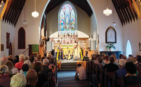 Later, and also part of Castlemaine State Festival’s wonderful musical program, Parvyn Singh and Josh Bennet played a rousing and enjoyable set to a receptive crowd at Maldon’s Holy Trinity Church. The venue created a divine environment in more ways than one, with coloured light through stained glass at dusk and the sounds soaring under the steep ceiling. Cross-fertilisation of cultures was again richly evident as Josh played sitar and Parvyn played guitar… and when they busted out the konnakol (Indian spoken percussion as in thake- thakita) during an otherwise pop-style, melodic song.