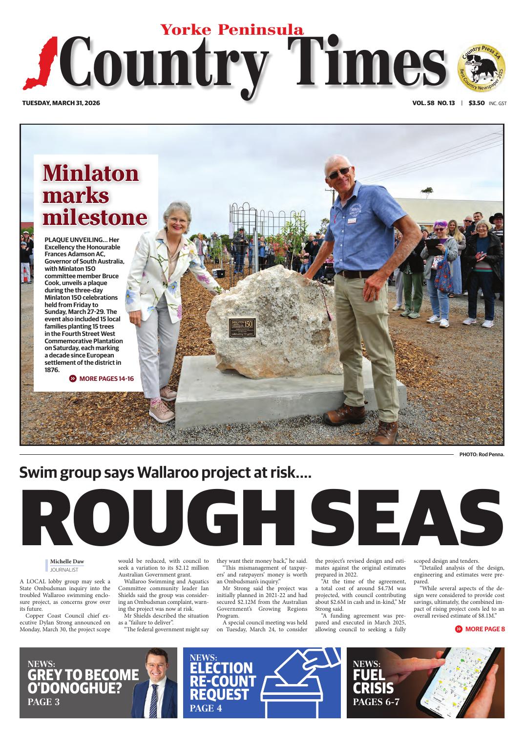 This article appeared in Yorke Peninsula Country Times, 31 March 2026.