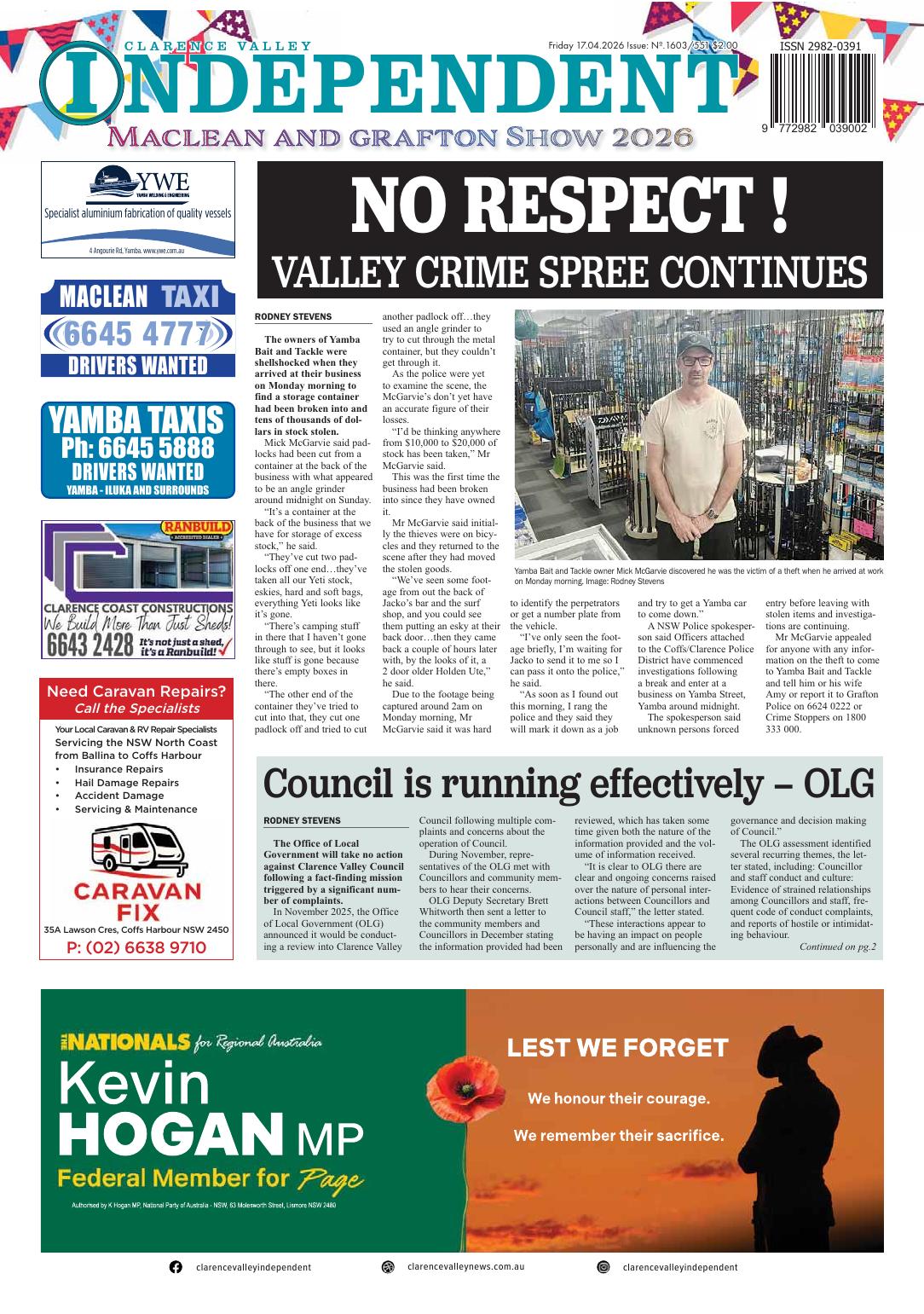 This article appeared in the Clarence Valley Independent, 17 April 2026.