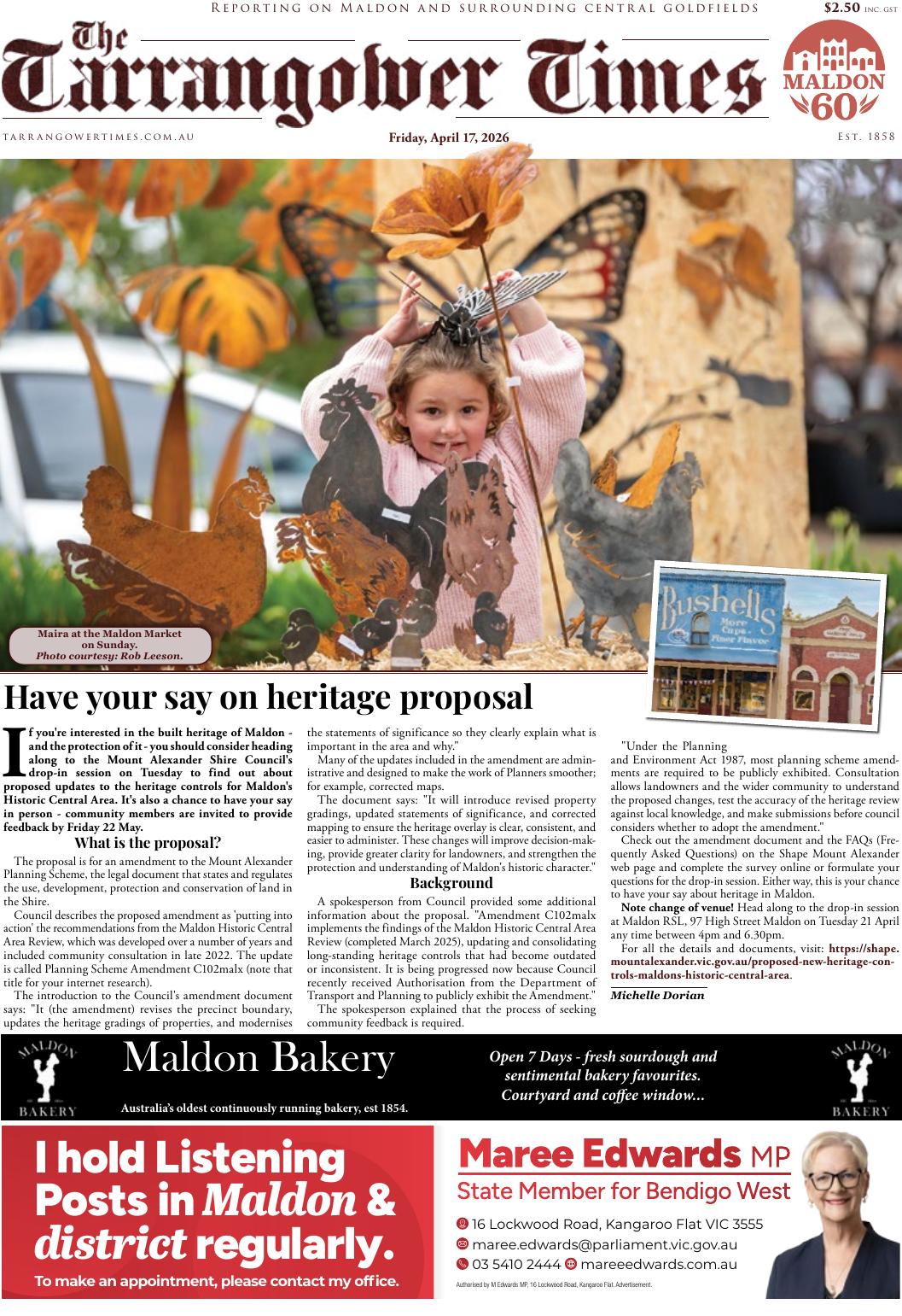 This article appeared in the Tarrangower Times, 17 April 2026.