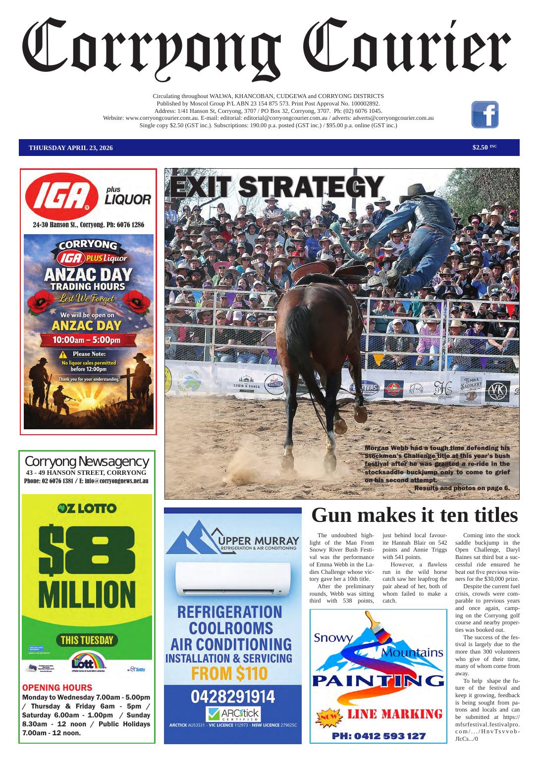 The undoubted highlight of the Man From Snowy River Bush Festival was the performance of Emma Webb in the Ladies Challenge whose victory gave her a 10th title.
